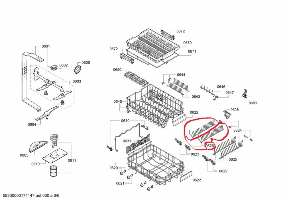 Indaplovės BOSCH/SIEMENS apatinio krepšio lėkščių laikiklis,1vnt ,orig.
