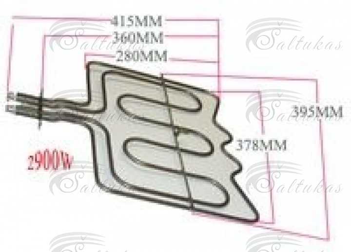 Įrenginio tipas: Orkaitė/kaitlentė, Tipas: Viršutinė kaitra, Talpa: 1900W, Ilgis: 416mm, Plotis: 428mm, Aukštis: 22mm, Flanšo ilgis: 100mm, Flanšo plotis: 22mm, Termostatas: Ne, Terminis saugiklis: Nėra