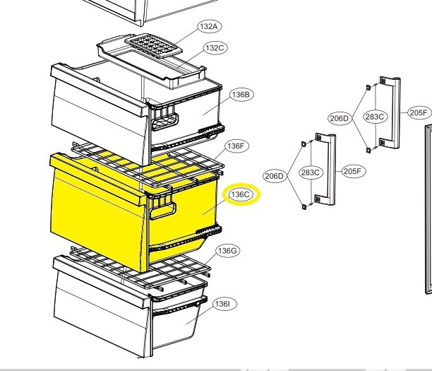 Šaldytuvo LG vidurinis šaldiklio stalčius,orig.