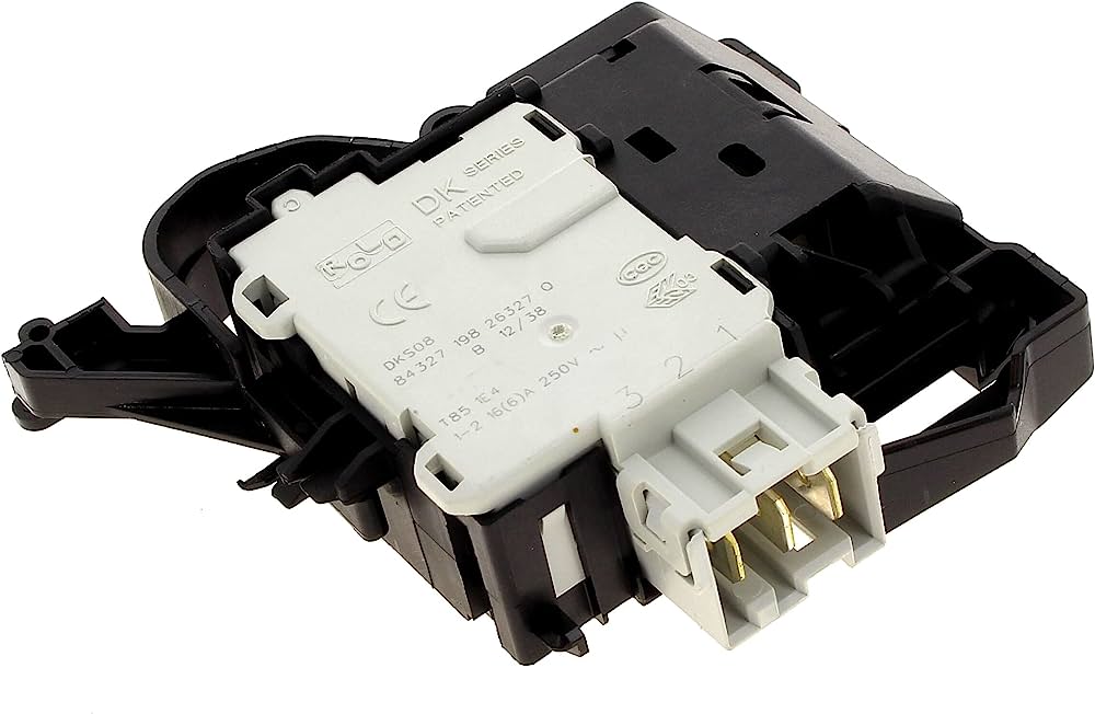 Skalbimo mašinos WHIRLPOOL, BAUKNECHT, ARISTON, INDESIT, durų užraktas (blokatorius), 3 kontaktai, su troseliu